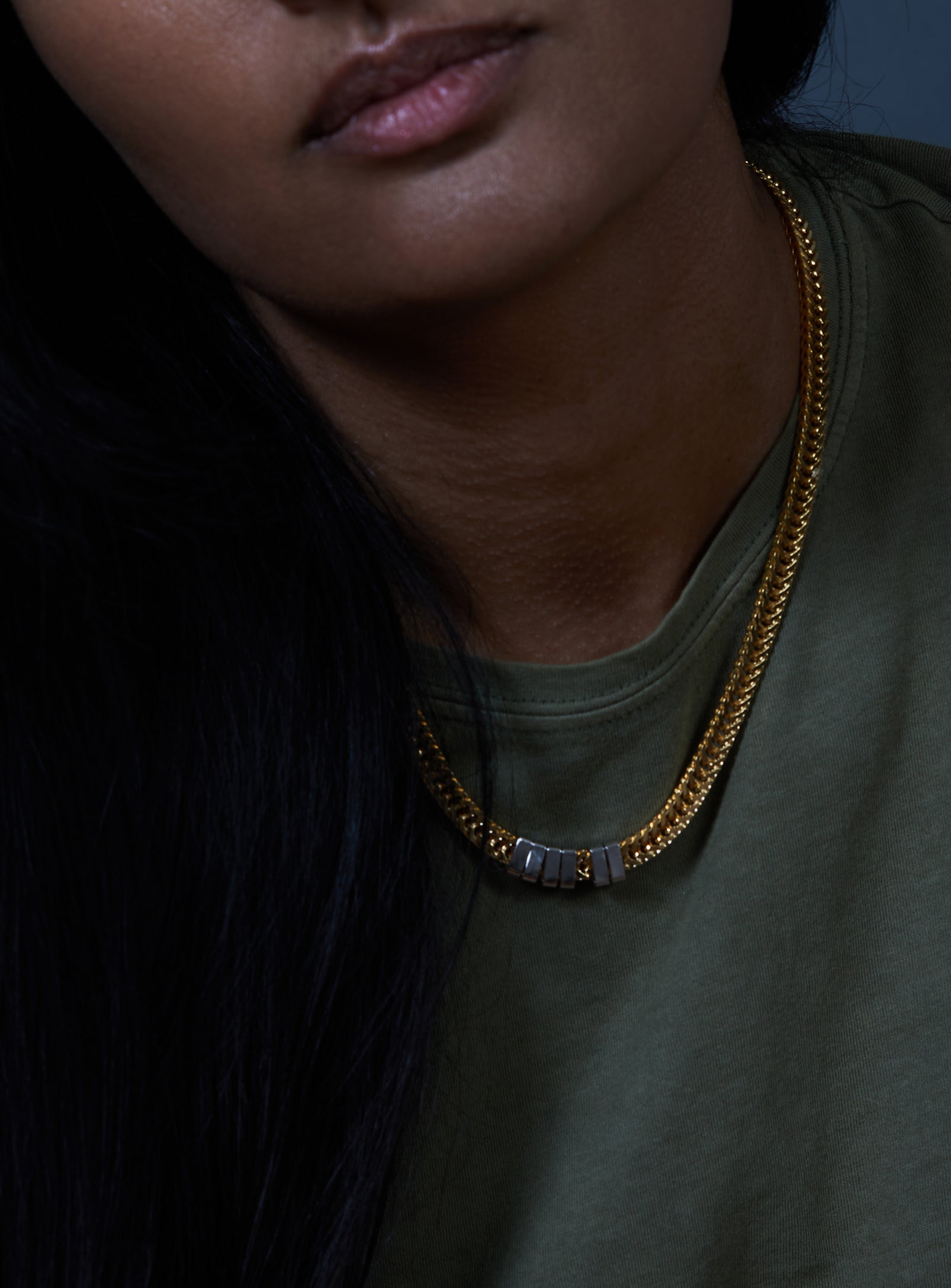 22k 골드 디테일의 로듐 전기 도금 체인 또는 그 반대.