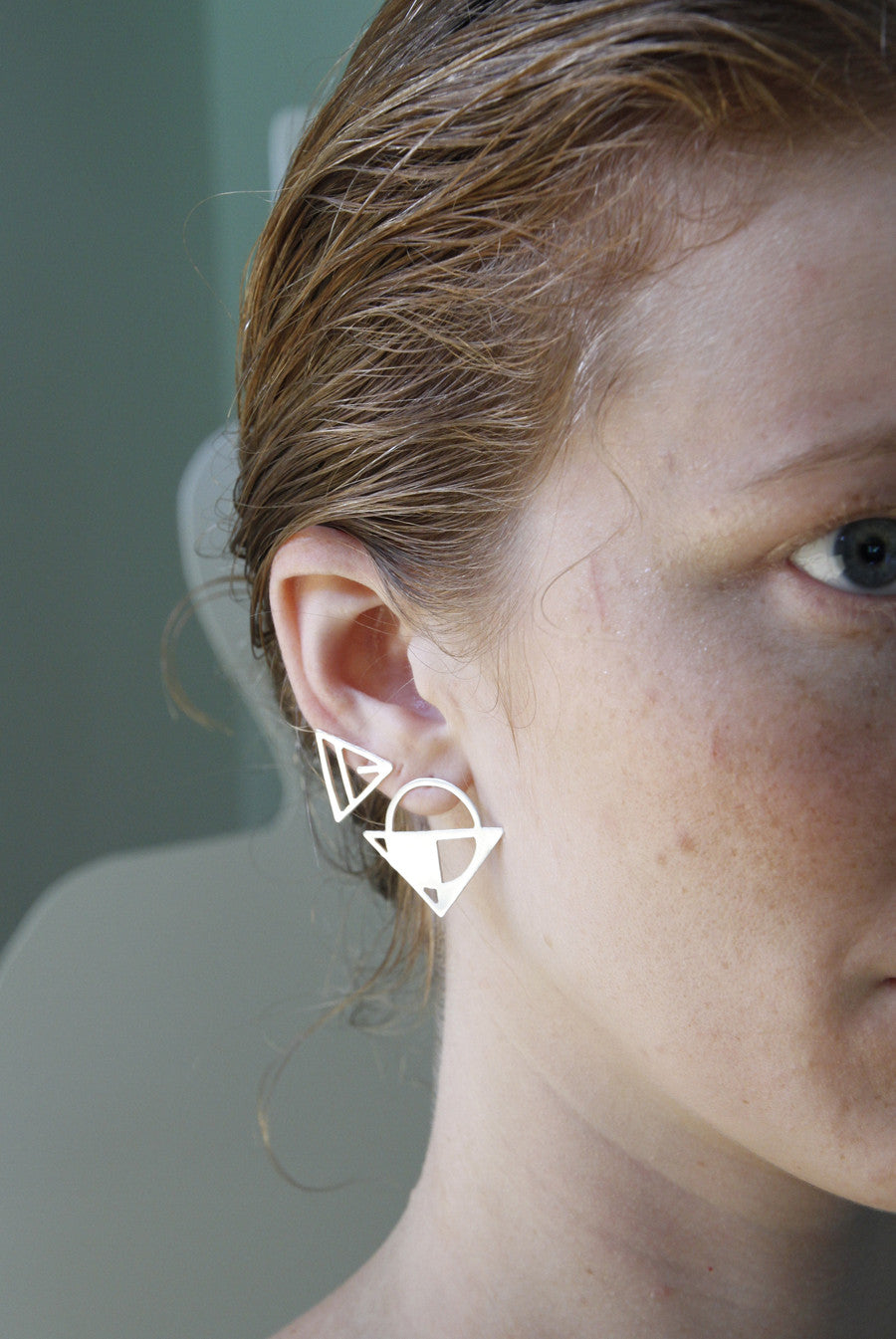 삼각형 귀걸이는 22k 금 전기 도금 또는 순은 스털링 실버로 제공됩니다.