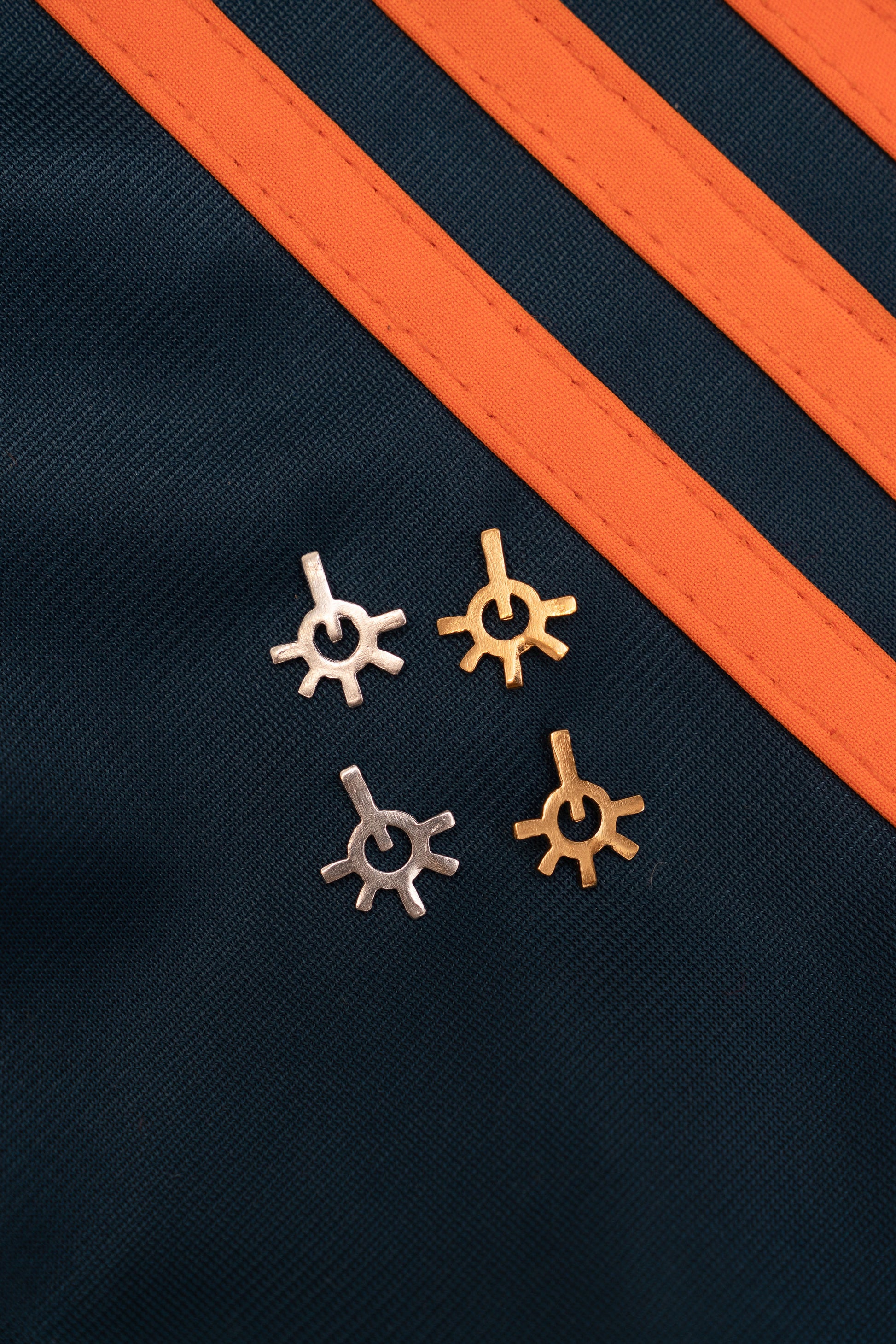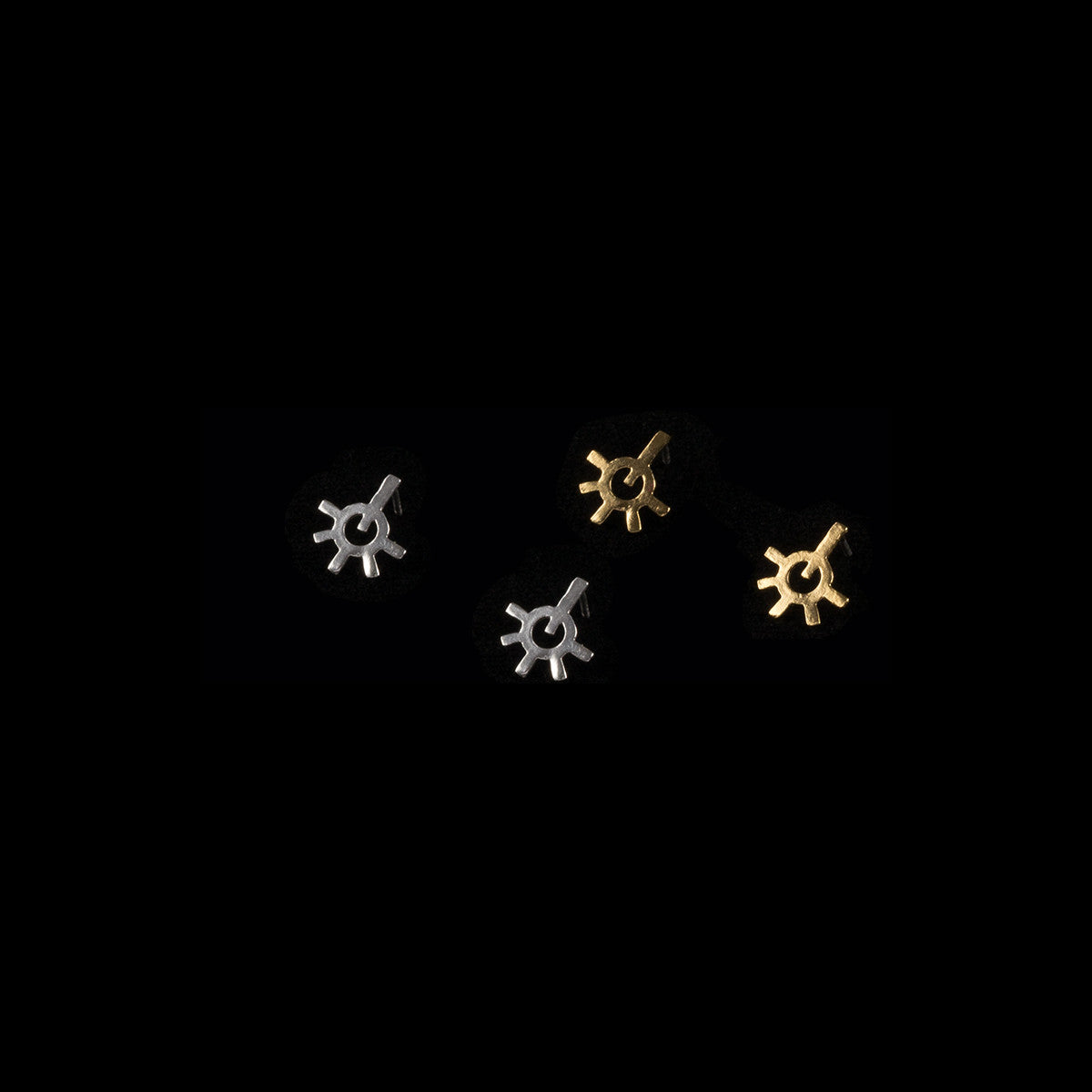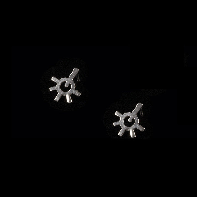 These small geometric earring were hand cut out of metal and cast in solid sterling silver. They also come in 22k gold electroplate over solid sterling silver (gold vermeil).