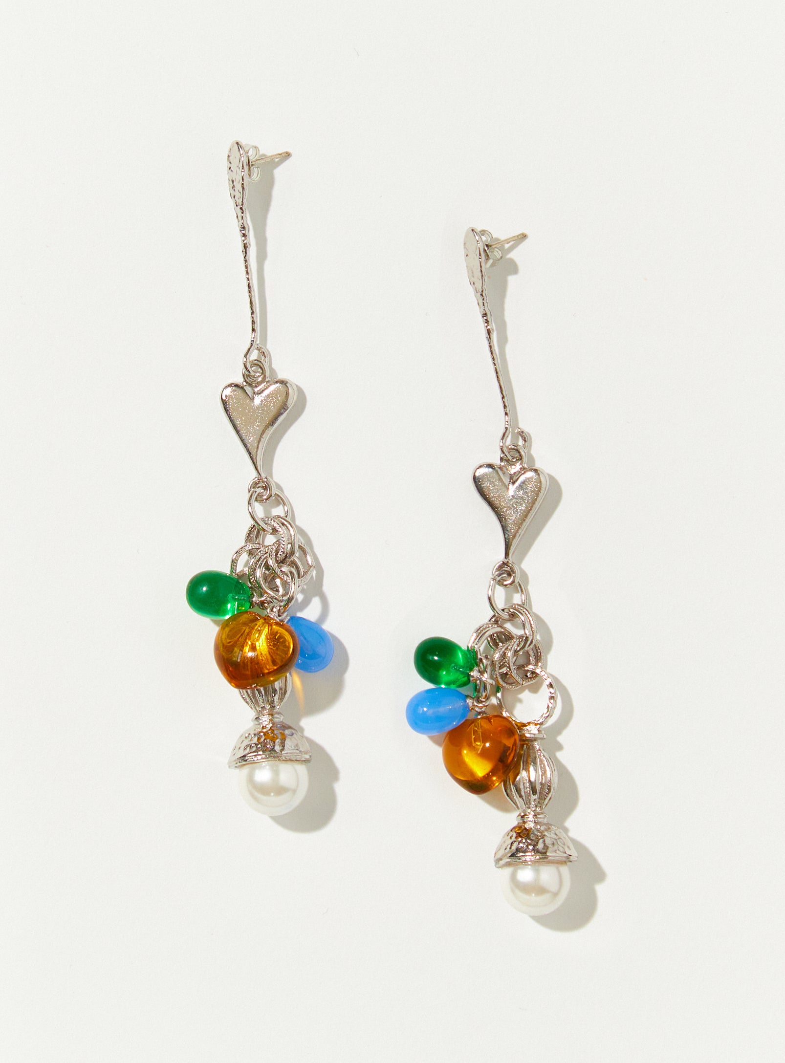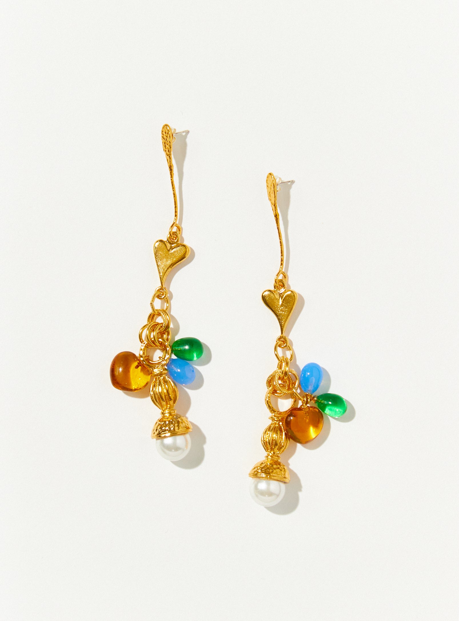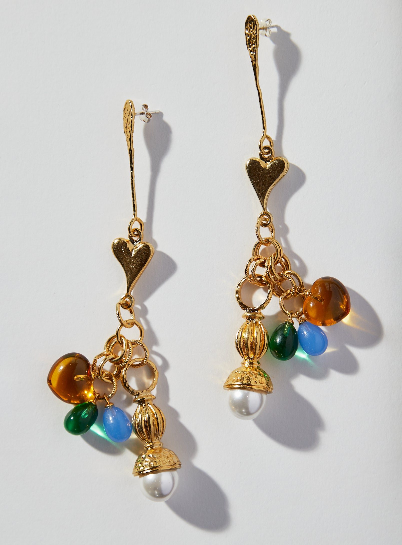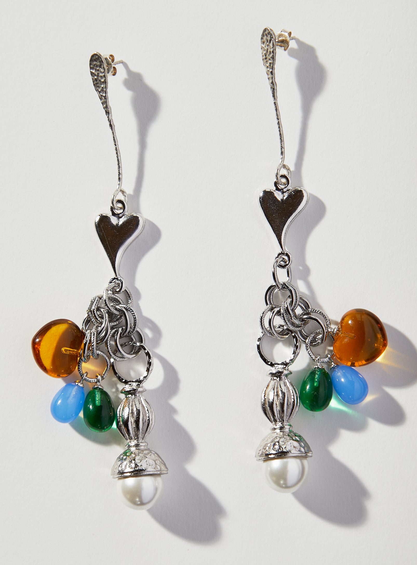 These earrings are a party (!) Made with vintage Czech glass drops and a glass pearl, these tassel earrings have solid silver earring posts, all electroplated in 22k gold or rhodium (earring post remains silver). Made in Toronto.