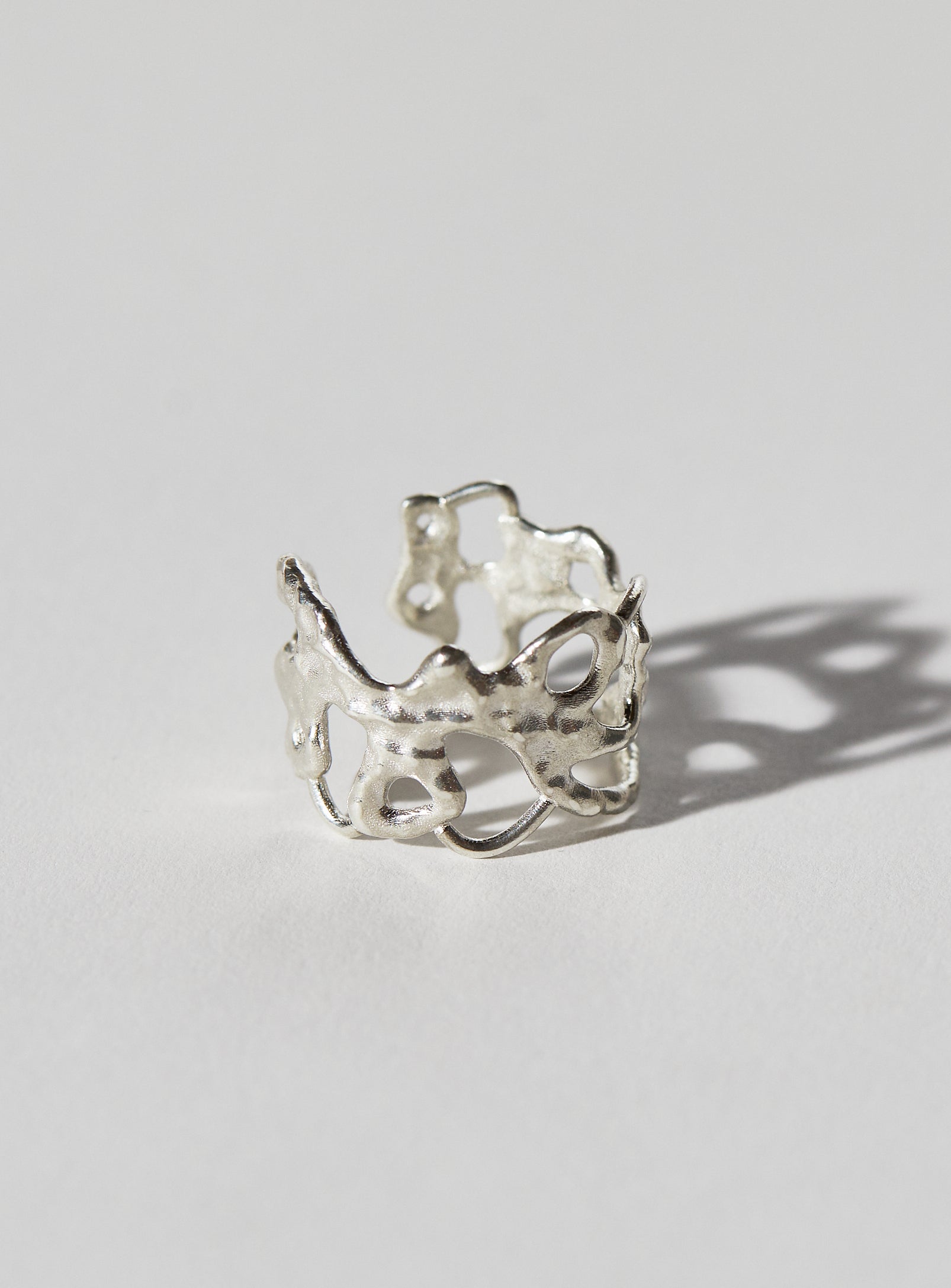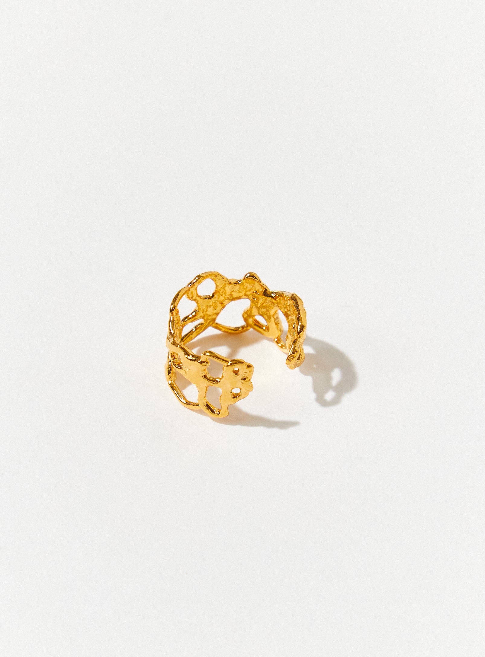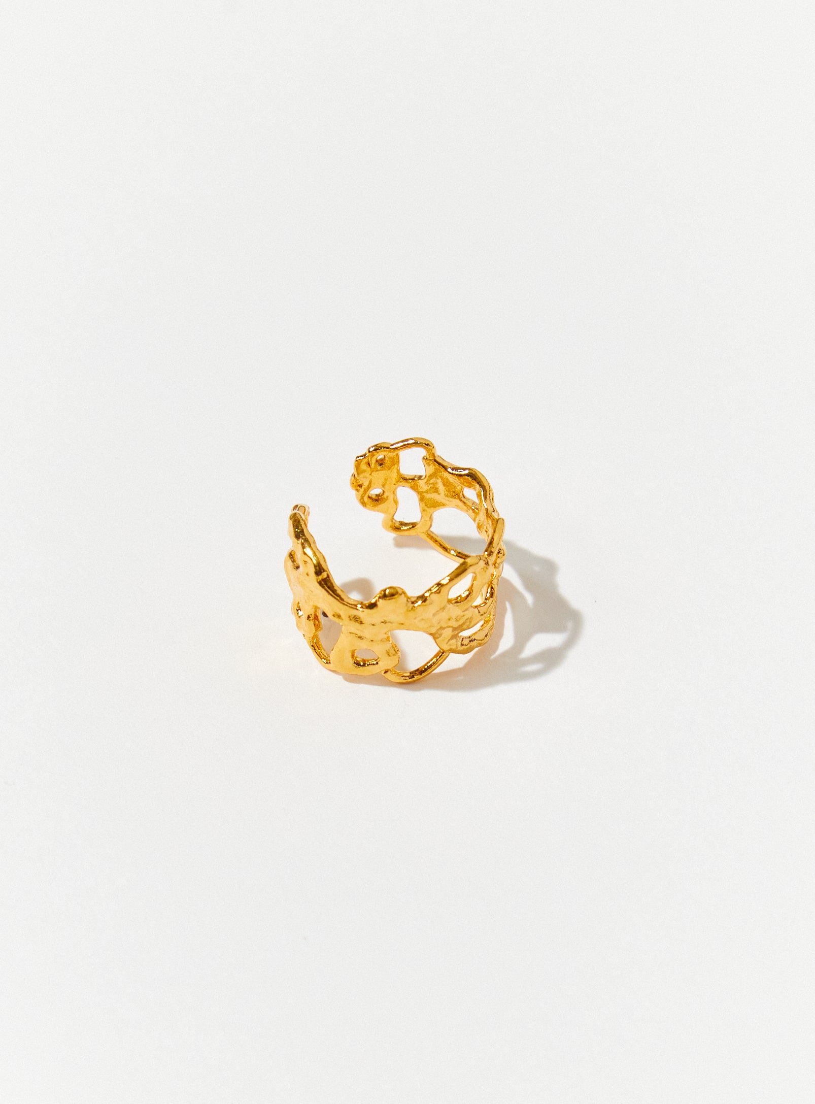 The Heat Ring has a soft flowing texture and is open at the back, making it adjustable in size. They come in solid sterling silver or gold vermeil.