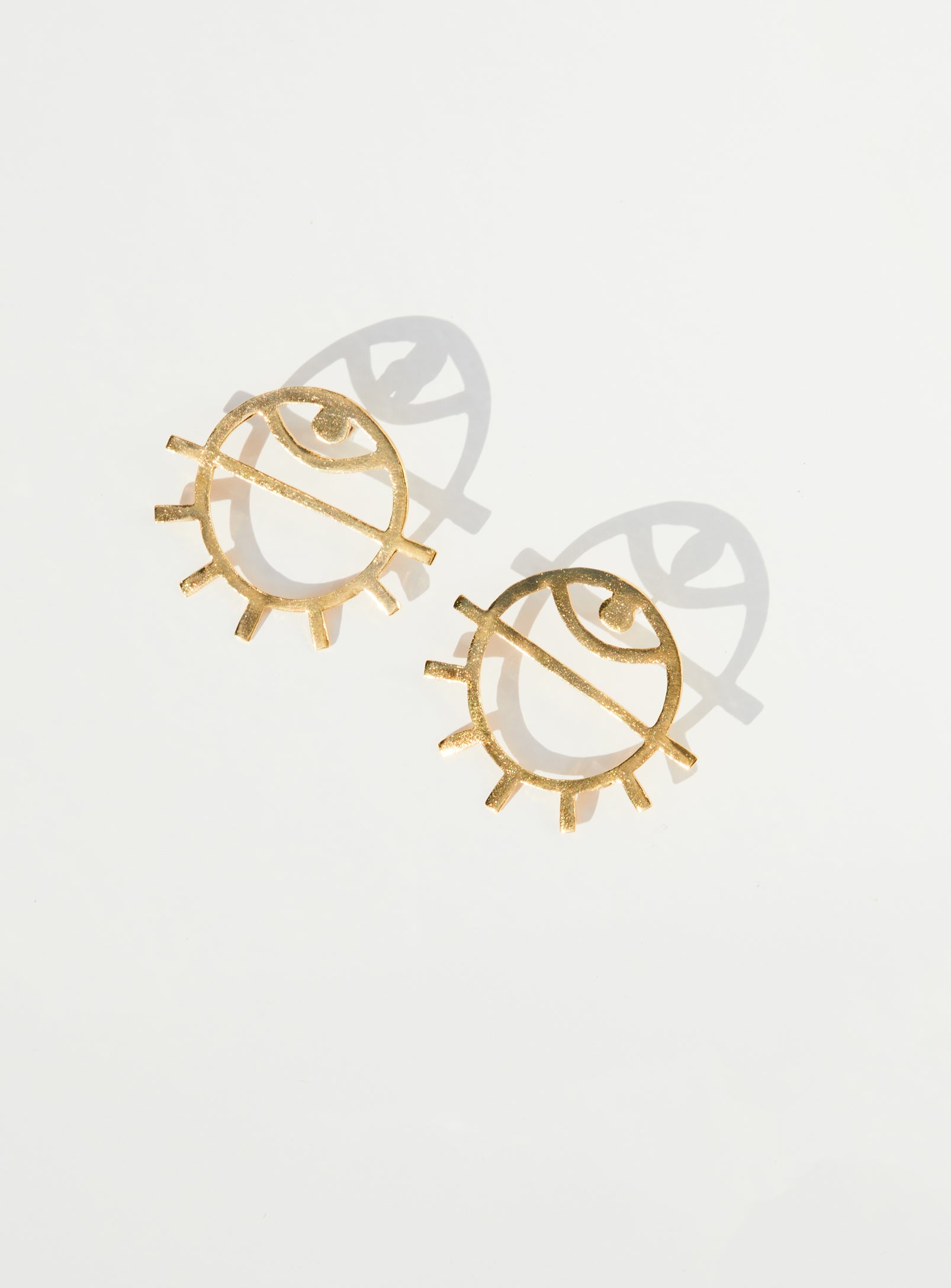 The Medium Eye Earrings come in solid sterling silver or 22k gold vermeil. Large Eye Earring are also available, if you're looking for a bigger look ;)