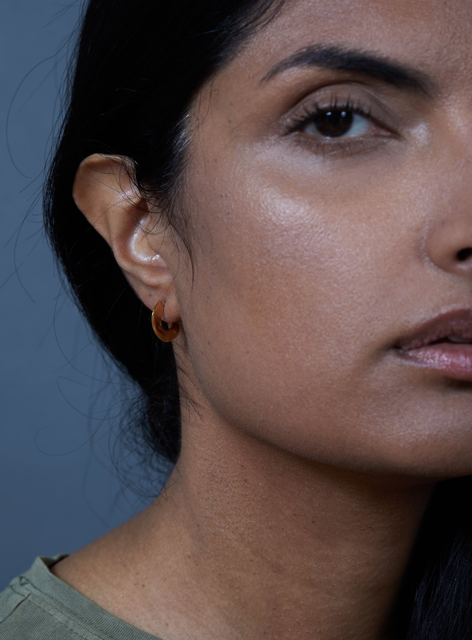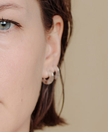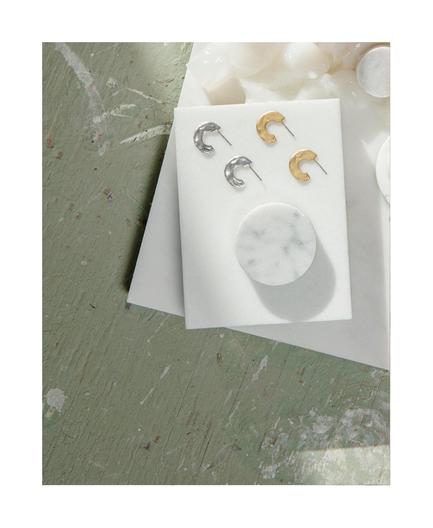 These mini disc studs (hoops) come in solid sterling silver and 22k gold vermeil. The Disc is approximately 13mm. All earrings come with sterling post backs. Shaped in wax and hand made in Toronto.
