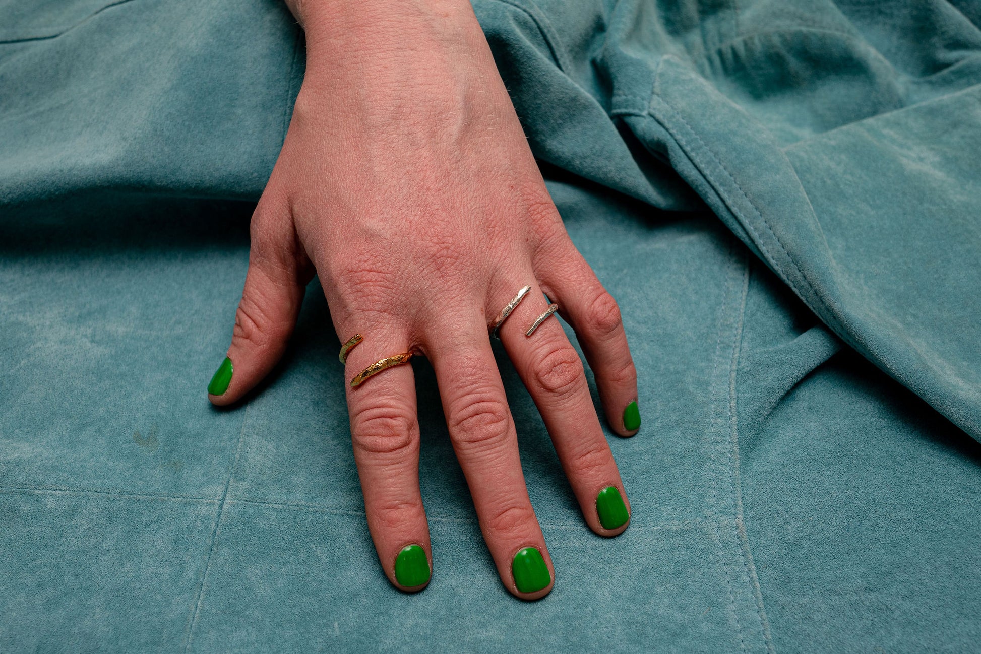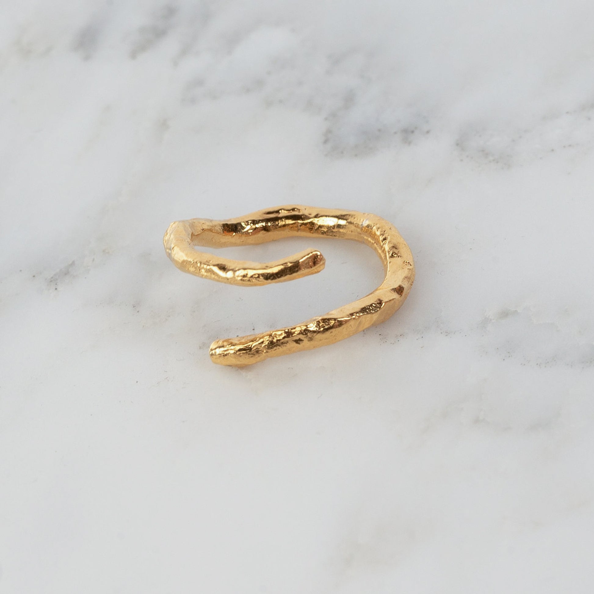 The Textured Wrap Ring is adjustable in size fits roughly from size 6-8. If you'd like it set to a certain size, please email us when you place your order.